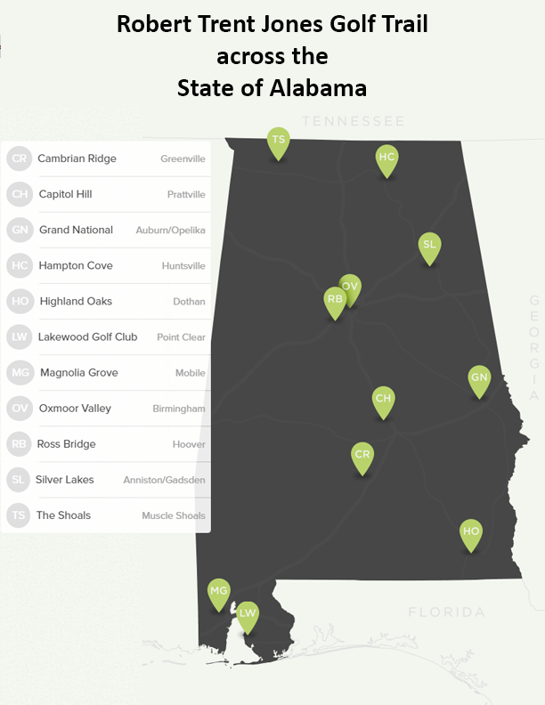 Discover the epitome of luxury golf travel on Alabama’s legendary Robert Trent Jones Golf Trail, where 11 world-class sites span over 400 holes of championship play designed by the master architect Robert Trent Jones Sr..